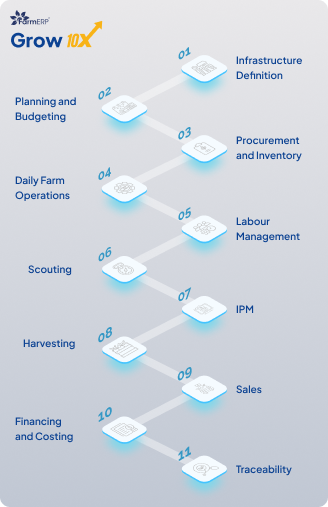 Run your farm operations smarter with real-time visibility, automated workflows, and AI-powered decision-making. From inputs to insights, Grow10X helps you grow more while spending less.
